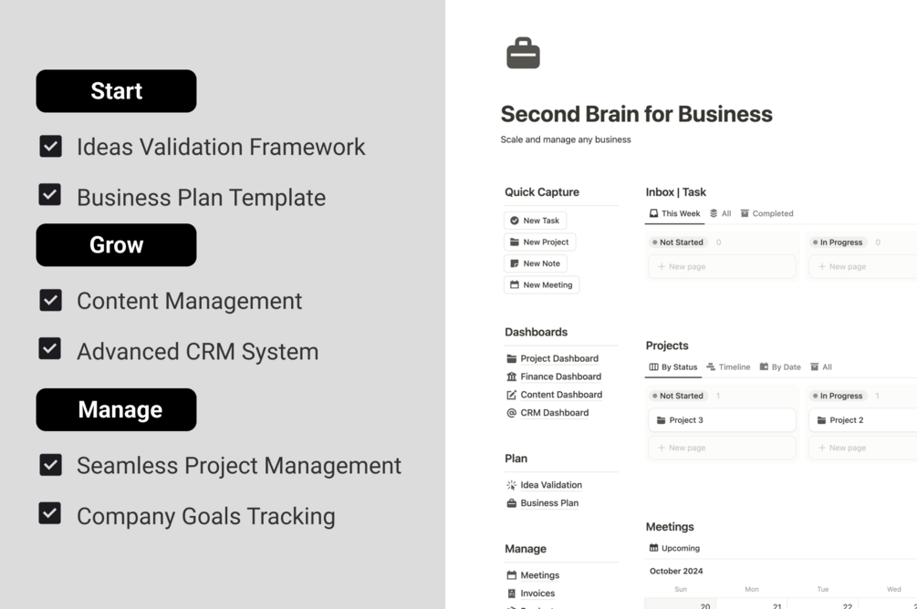 Watch your vision come to life. The Second Brain - Business template is everything you need to start, manage and grow your business.